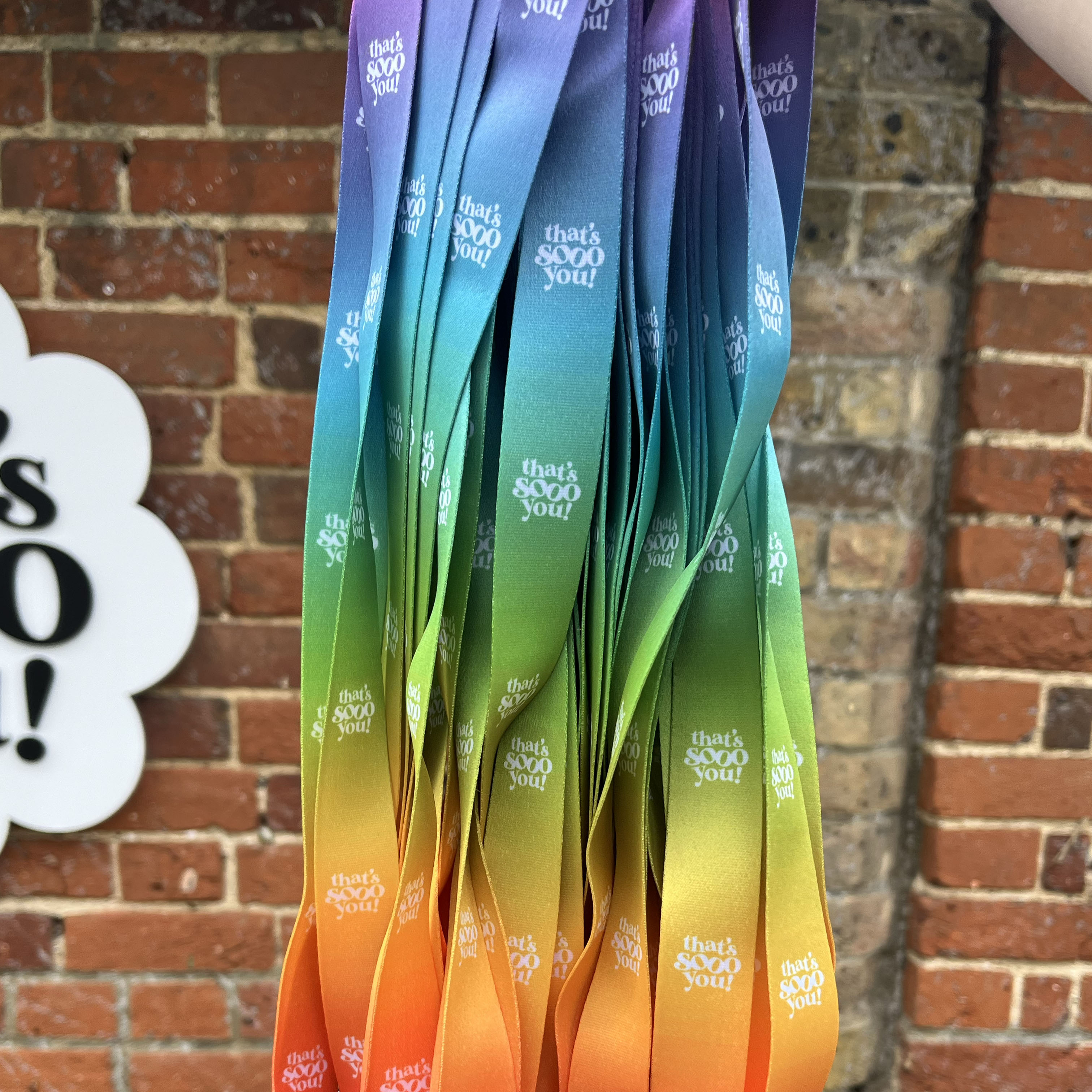 Add a pop of colour and convenience to your day with our Rainbow Lanyard!